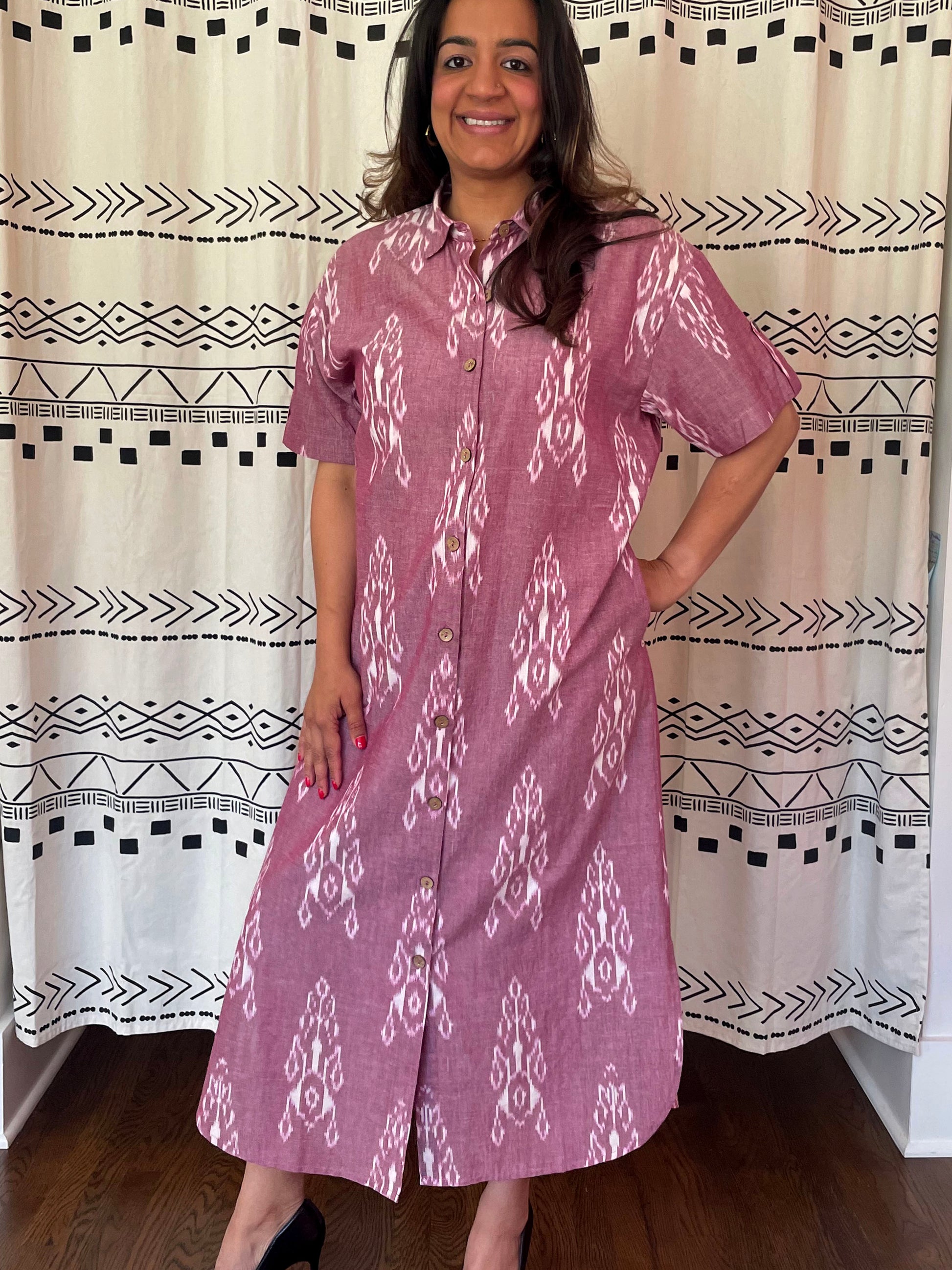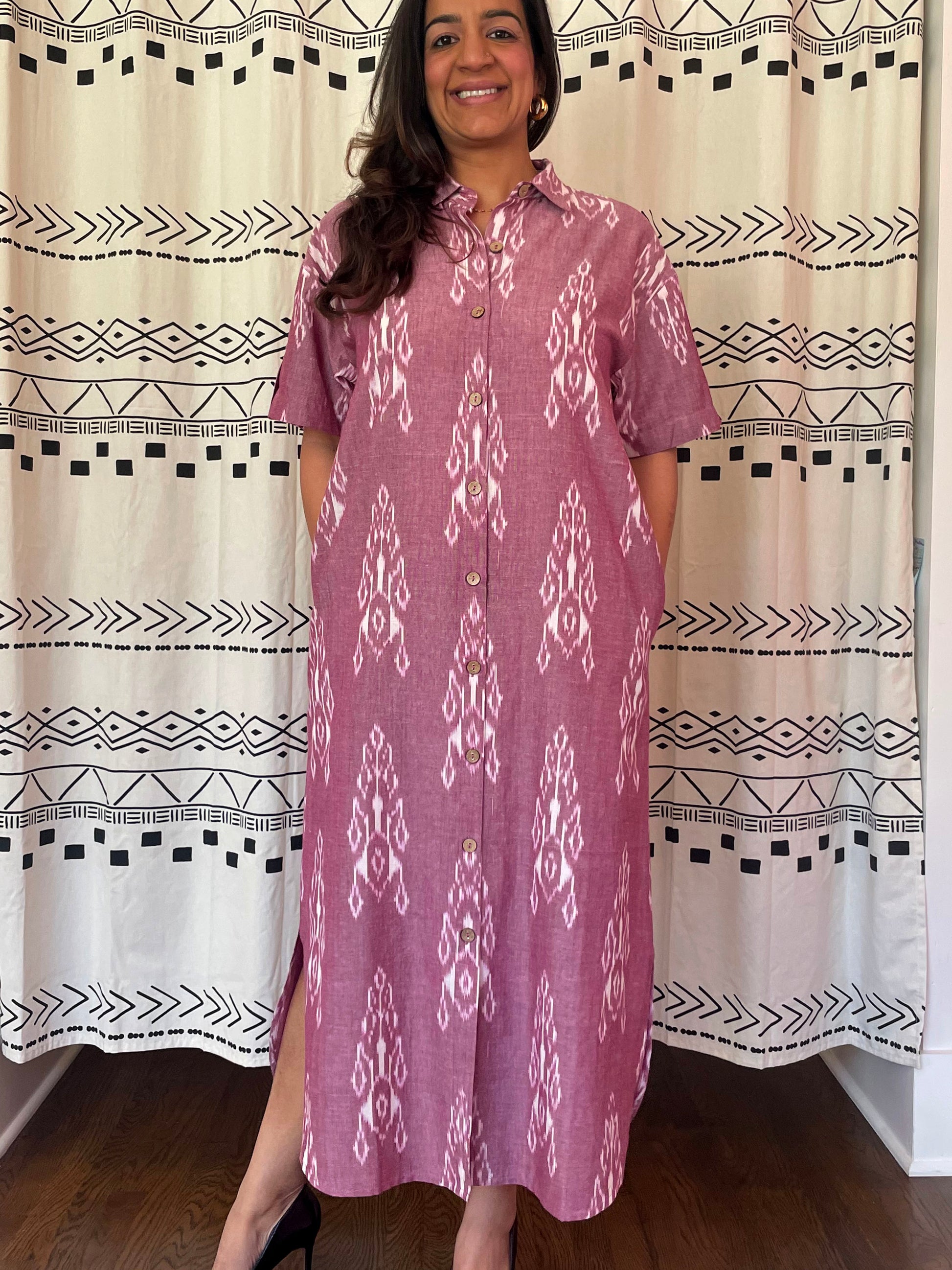 Step into sophistication with our Collared Long Dress. This elegant piece, made from naturally dyed textiles, combines a classic collar with a modern, elongated fit for a truly timeless look.
