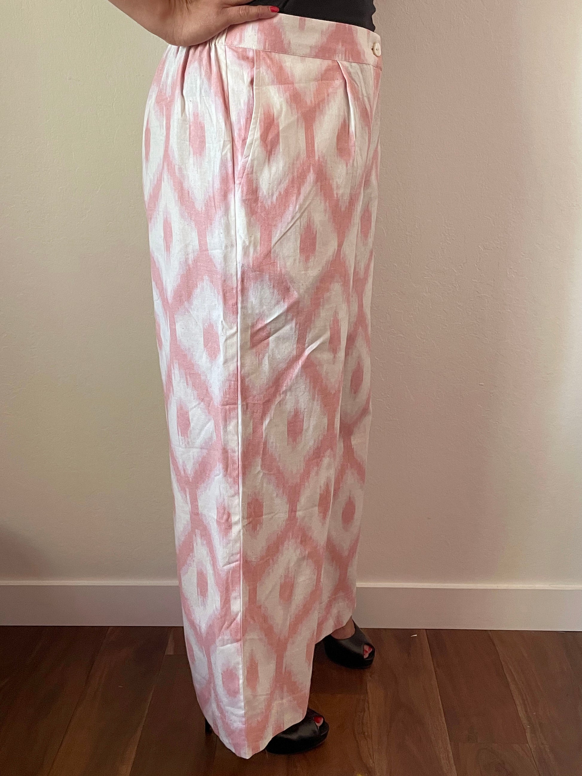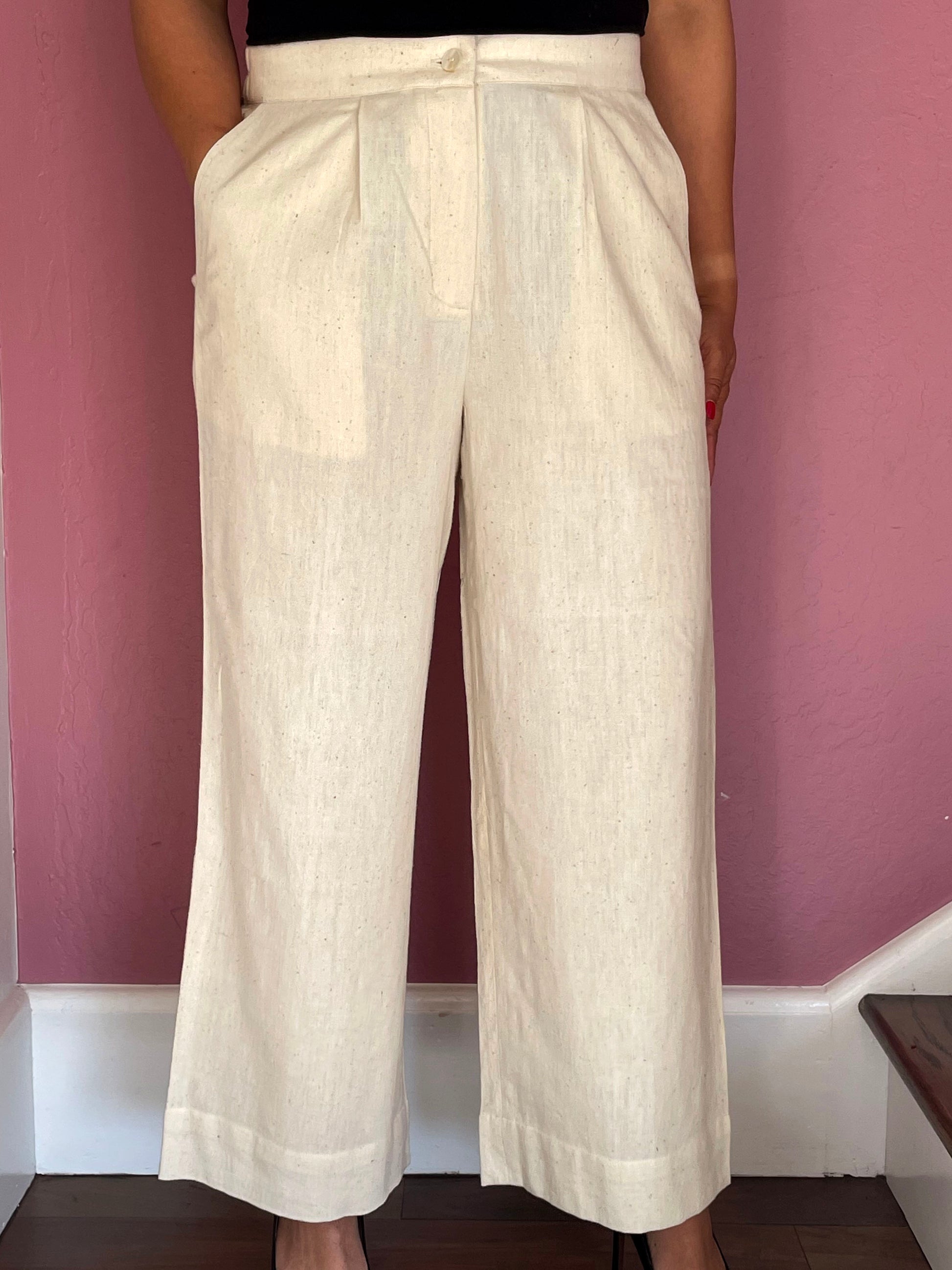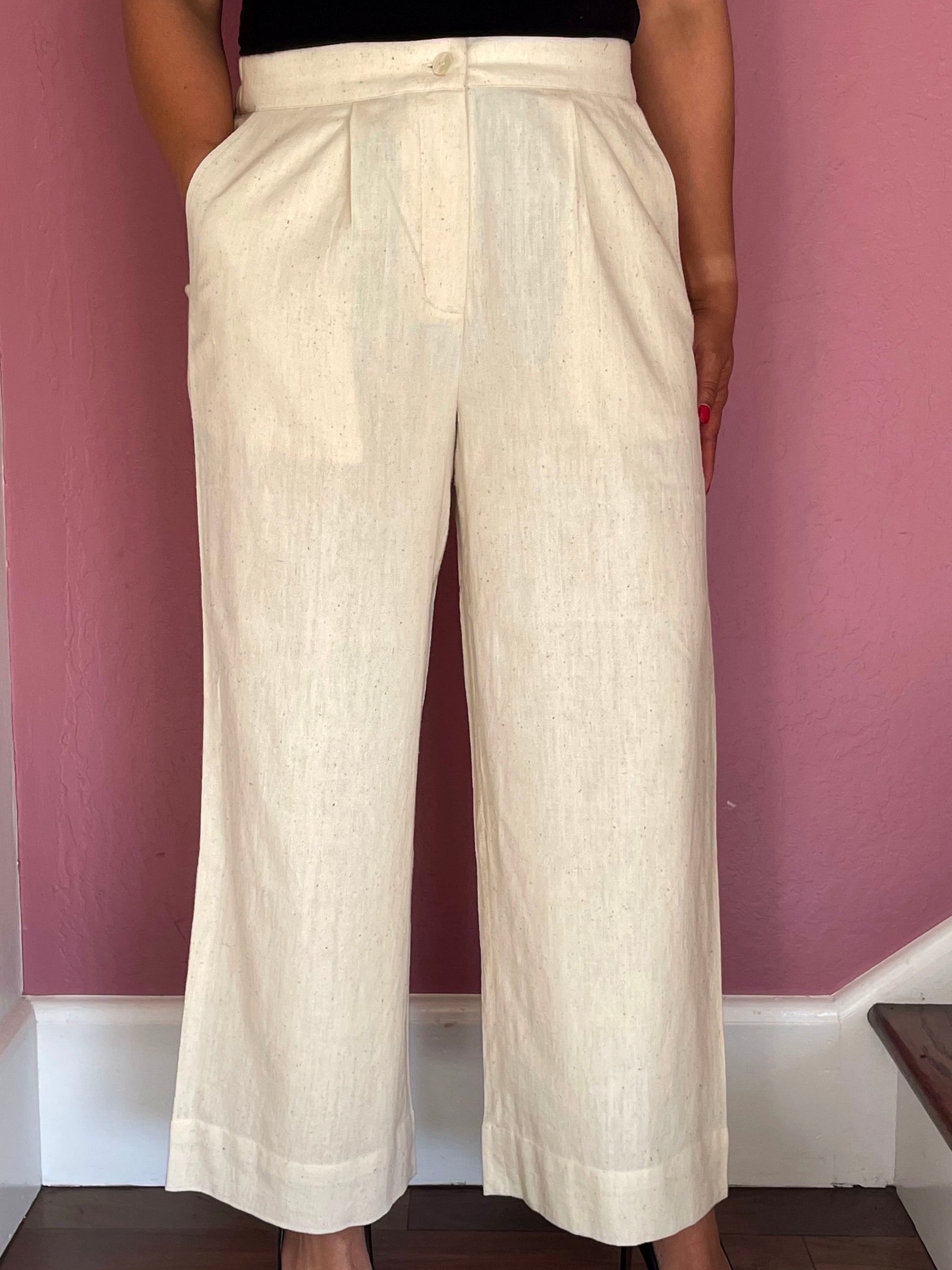Crafted from breathable, handwoven Kala Cotton, the Earthy Flow Wide-Leg Pants bring effortless movement and elegance to your wardrobe. With a relaxed fit, front panel details, and a comfortable back elastic, these pants are perfect for work, casual outings, or a relaxed weekend look. Style them with our Heritage Button-Down Shirt or a simple crop top for a timeless, sustainable fashion statement.