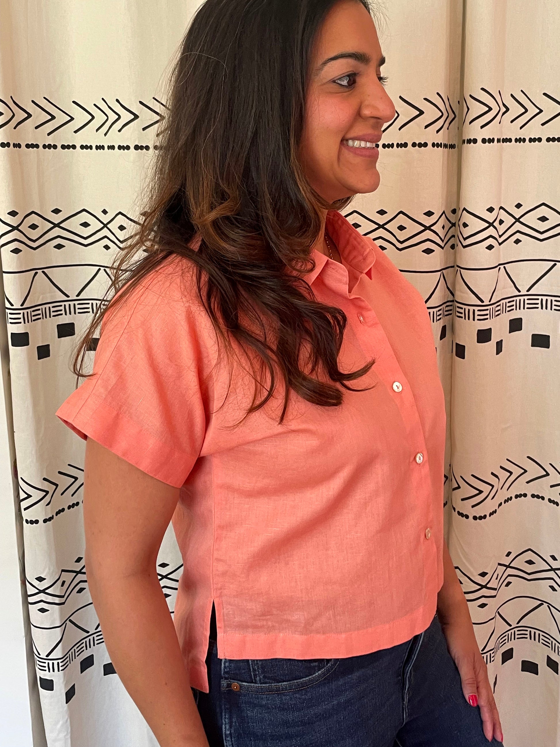 Embrace contemporary style with our Crop Shirt, made from soft, sustainable fabrics. This trendy piece pairs perfectly with high-waisted bottoms for a fresh, modern look.